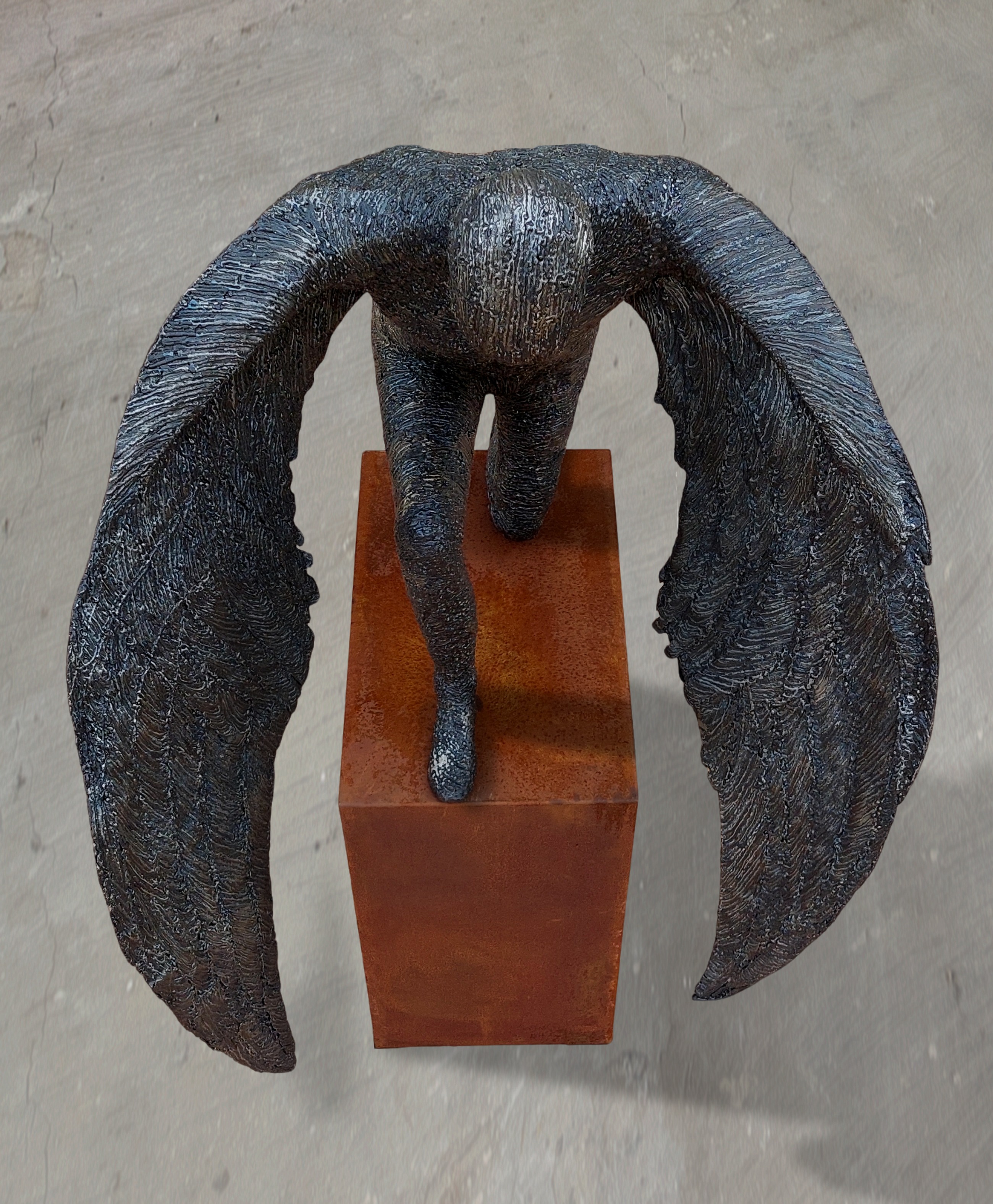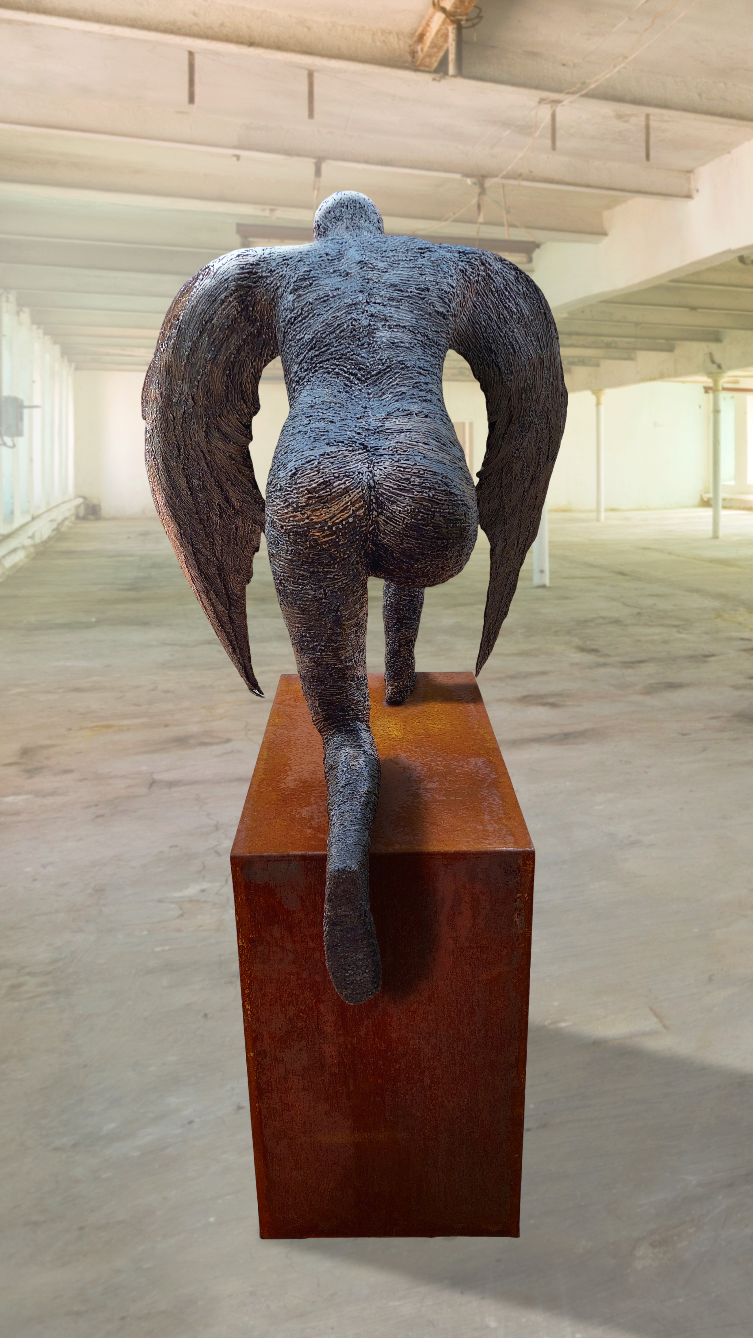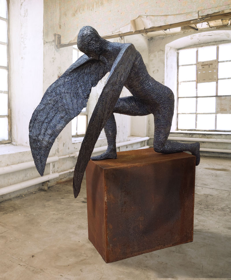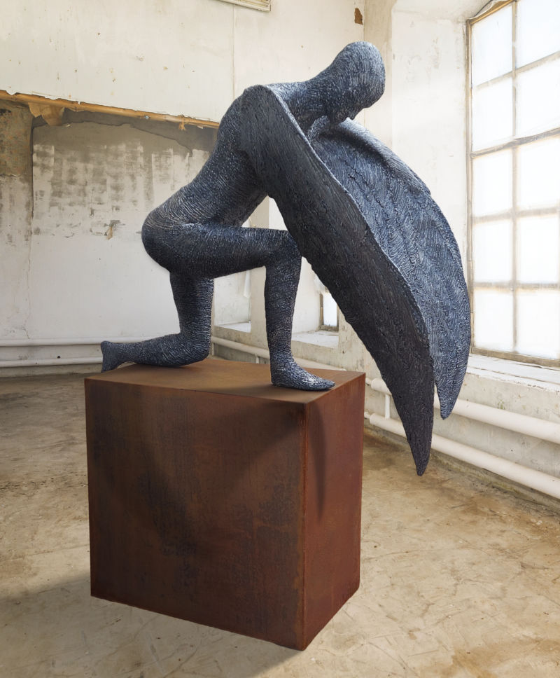 Life-size male sculpture, Alaris, is a Latin term primarily meaning "of or belonging to the wings".