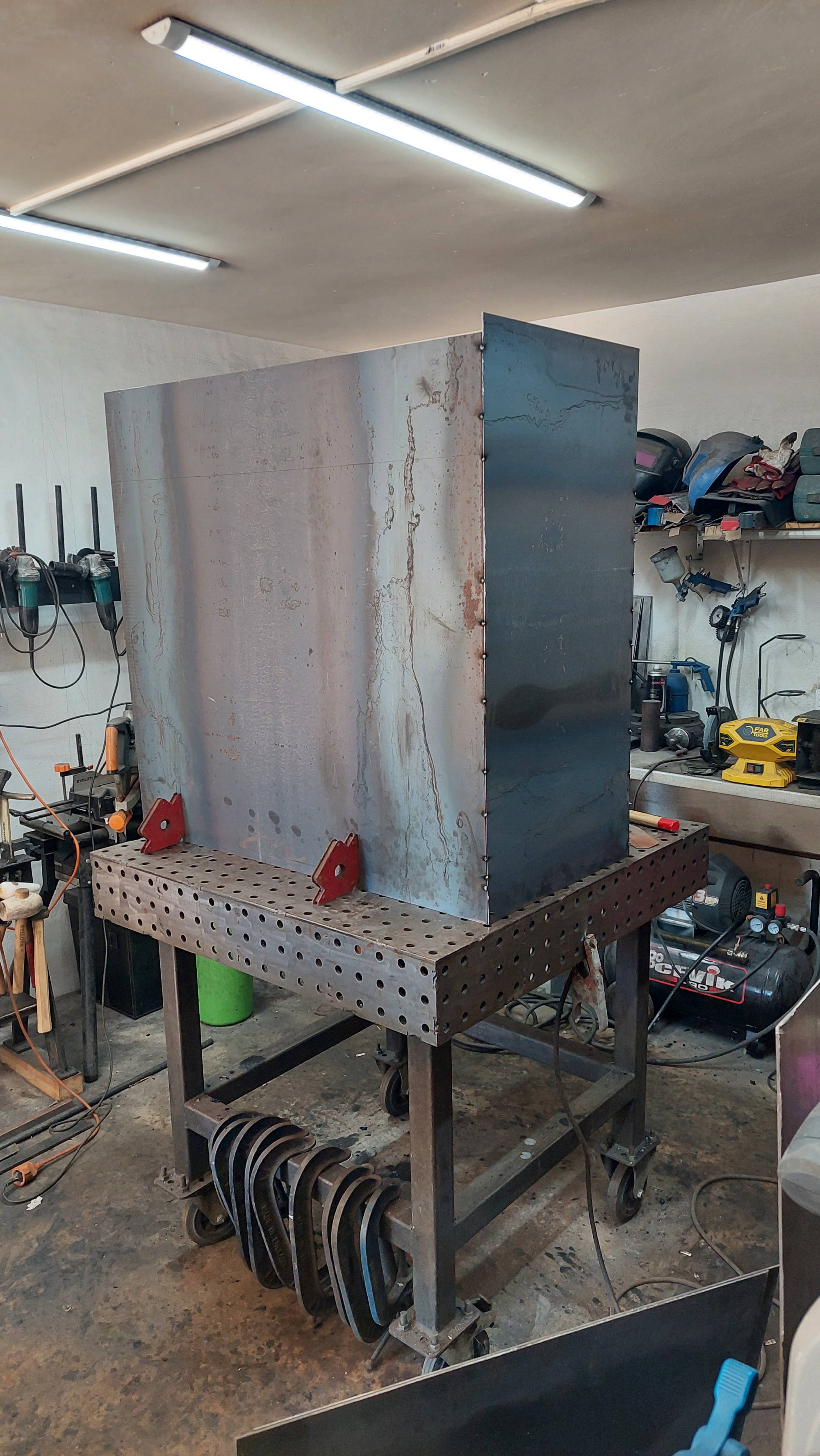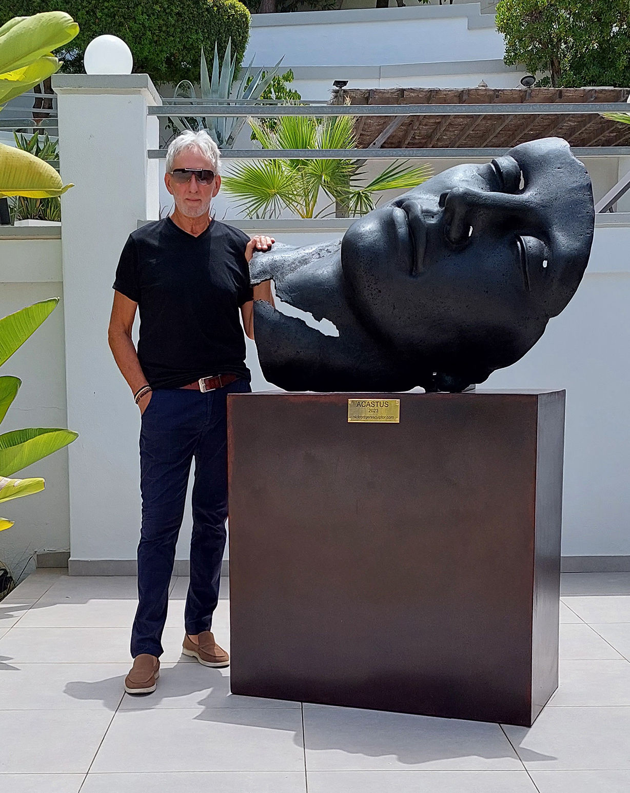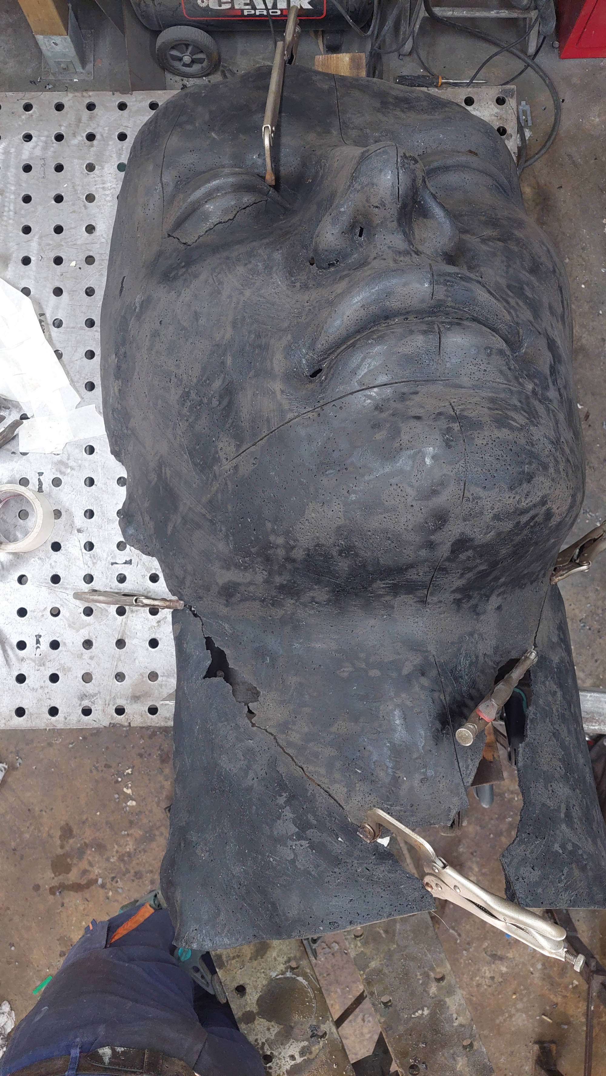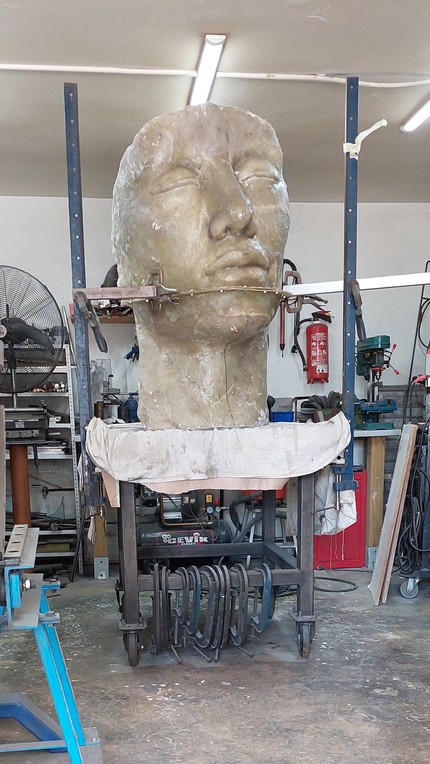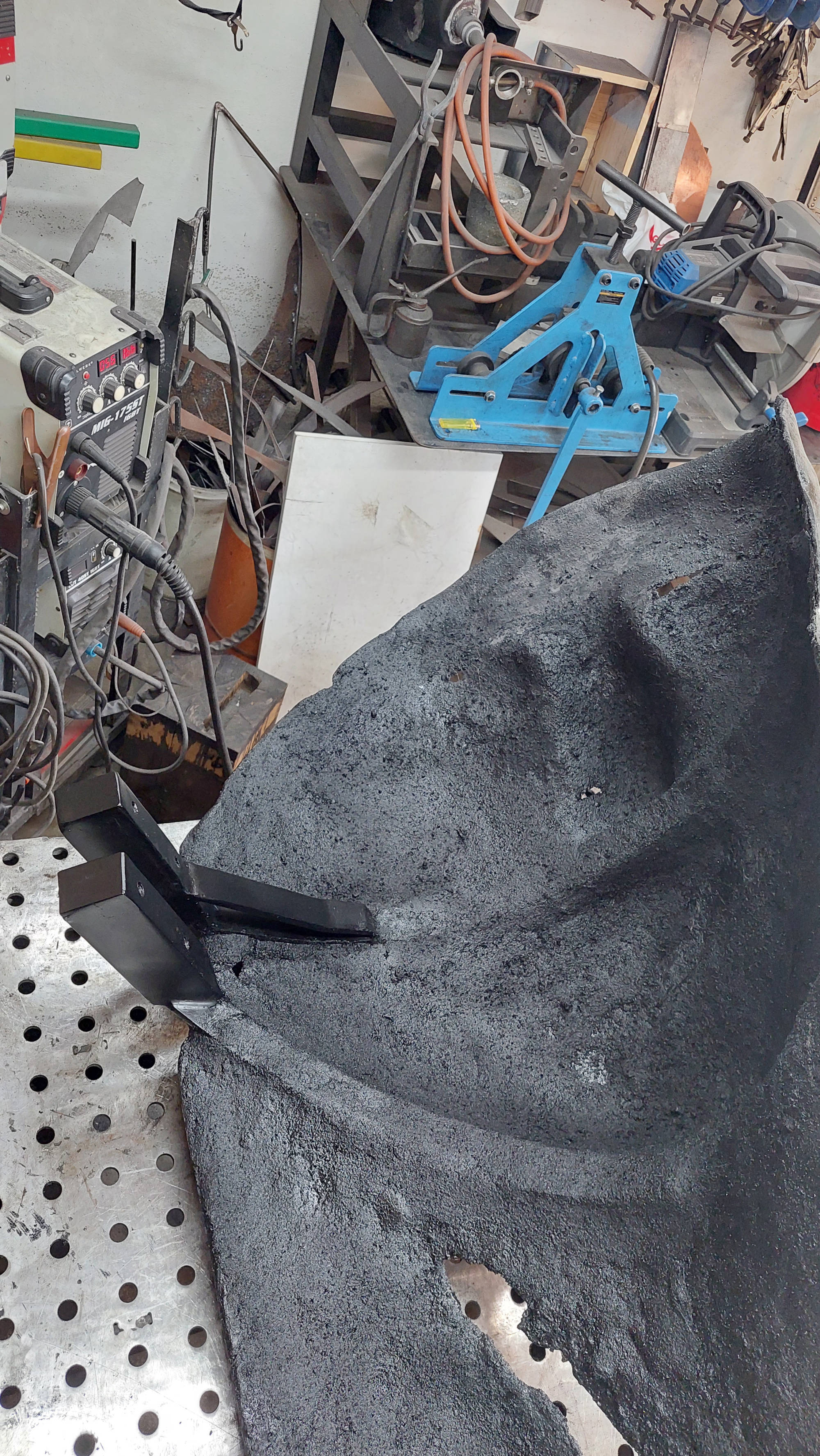 The sculpture stands 1.9m x 1.2m and resting on a base of steel which has been oxidised and lacquered, complete with its solid brass plaque and build photos. Weight is 100kg. Build time 2.5 months