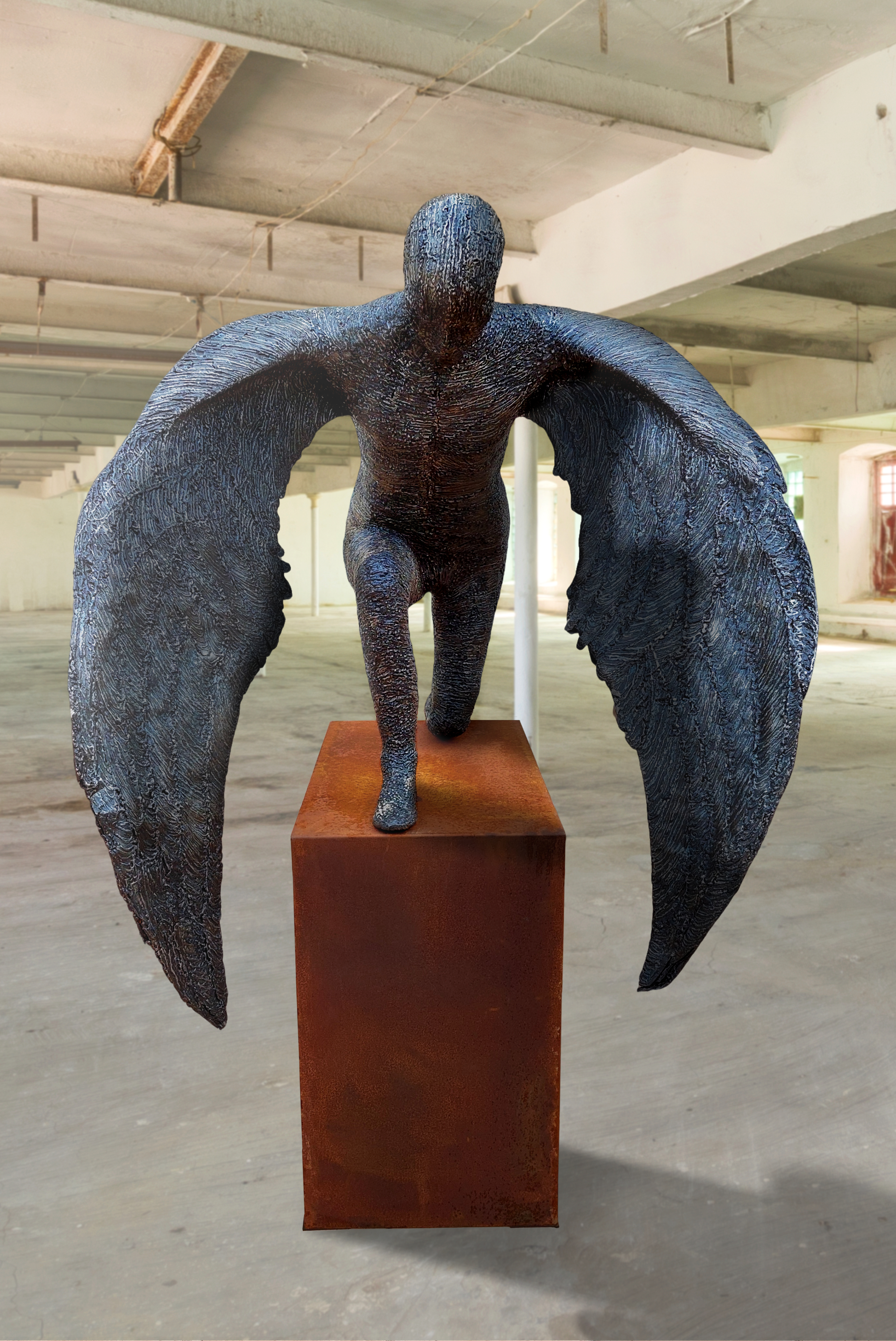Life-size male sculpture, Alaris, is a Latin term primarily meaning "of or belonging to the wings".